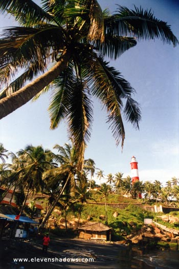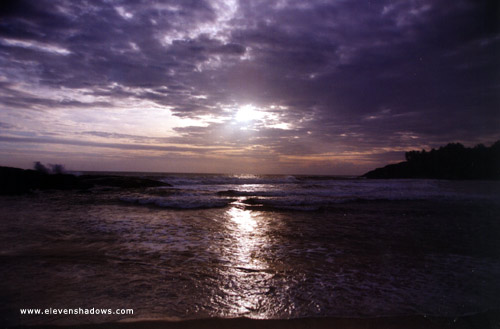 Kovalam sunset at Hawah Beach. Kovalam is sort of like a considerably more relaxed version of Goa and is very popular with both Western and Indian tourists. Here, tourists can have German cake, fresh barracuda, and Italian, French, Israeli cuisine, and beer and mixed drinks. |