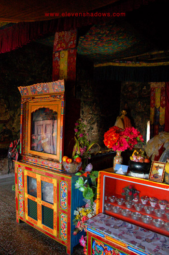 with offerings and yak butter lamps inside the Shey Palace just outside Leh
