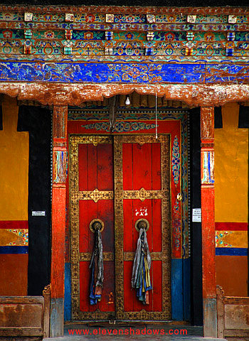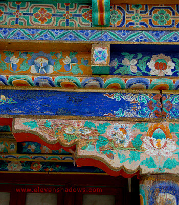 You'll see a photo of all of Thikse Monastery on the next page.Shown here is a close-up of the paintings above the doorways in the courtyard... |