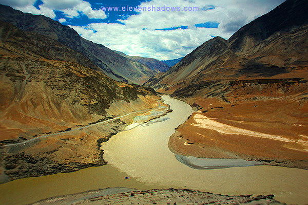The darker brown-colored Indus is to the left, with the lighter-colored Zanskar