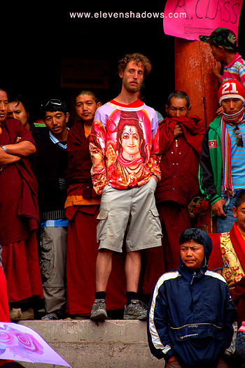 "You should have a 150Rs ticket for here," he muttered. "Yes, and I paid 250Rs, so I should also get a nice chair," I insisted. He hesitated, but my infallible logic had undoubtedly won him over, and he waved me past. This was the first time I had gotten in to a designated area, away from the pushing throngs. Then I ran into a travel agent I had met from Leh who greeted me warmly. With a belly full of noodles and no one leaning on my shoulders, I felt reenergized, and began shooting photos unimpeded.