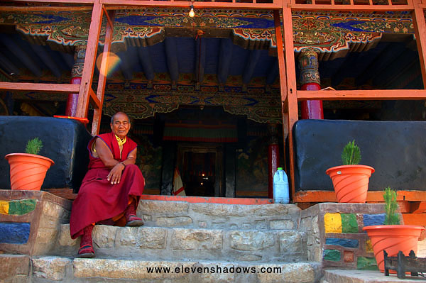 ready for playing at the Sankar Gompa in Upper Changspa near Leh.This was my last full day in Ladakh. Tomorrow, I would travel to Dharamsala by way of Delhi. |