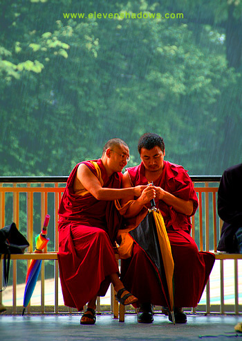 all sat in the shelter of the Dalai Lama's temple as the rain continued