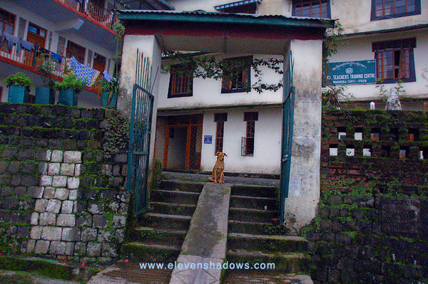 dog holds court in the Tibetan Children's Village on the walk up to Dal