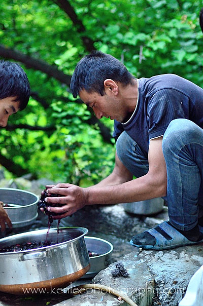 Lundhup, right, and a guest named Su make mulberry jam. And yes, it was really really good. |
