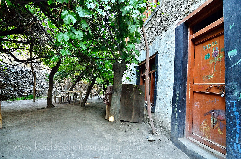 We ate our meals here, all prepared by Lundhup. An enormous grape vine provides a beautiful canopy and much-needed shade during the hot summer months. |