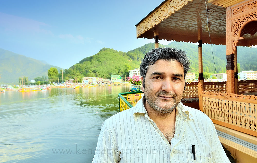 Fayaz, my Kashmiri brother, with Dal Lake and Ajanta Palace Houseboat in the background. |