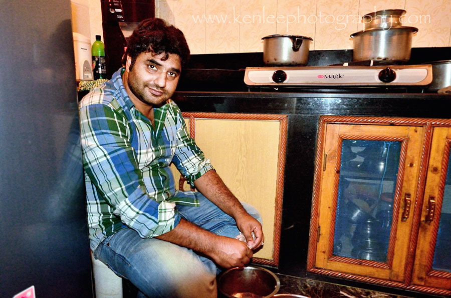 Khalid, helping out in the kitchen along with Fayaz and Nazia. |