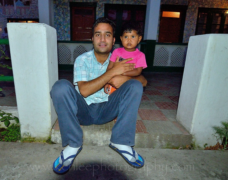 Jimmy with one of the kids whose parents work at the Ajanta Group of Houseboats. |
