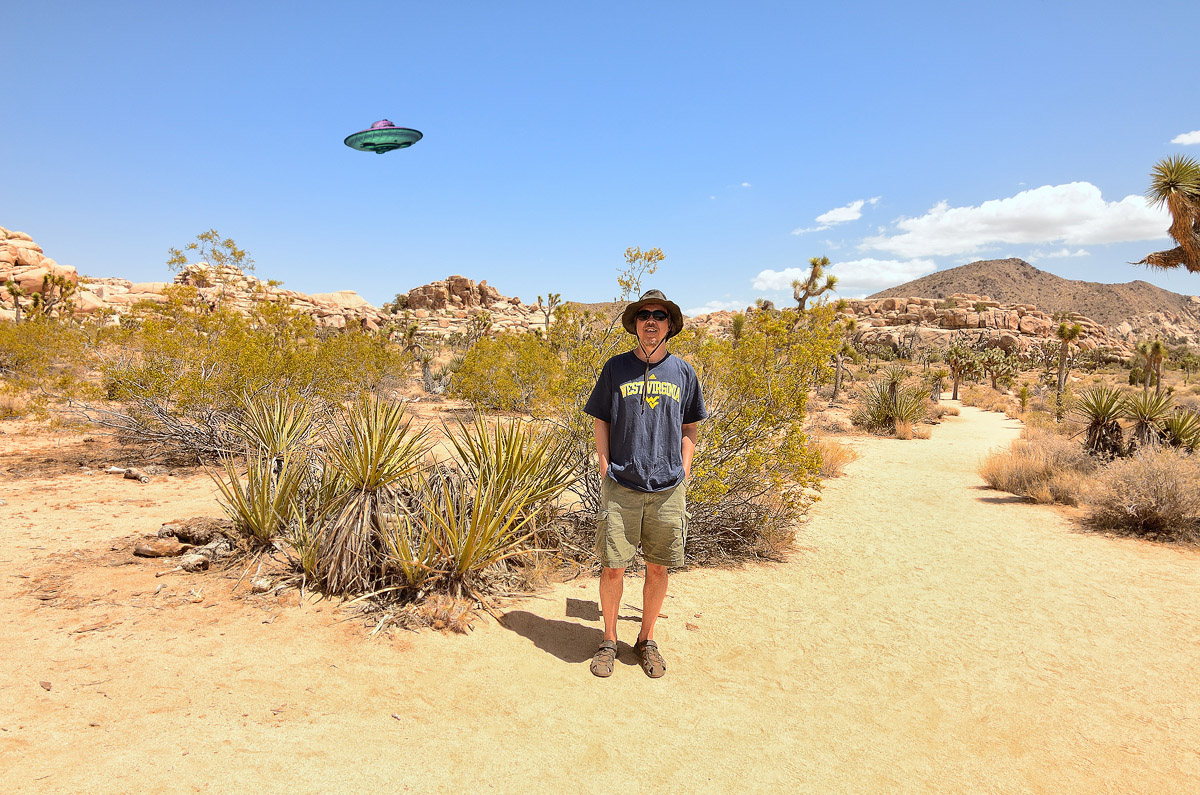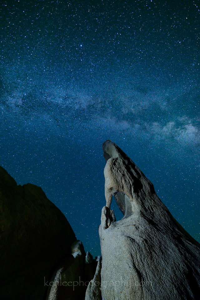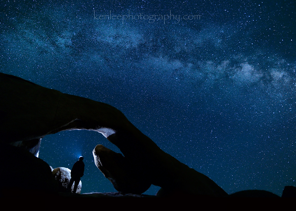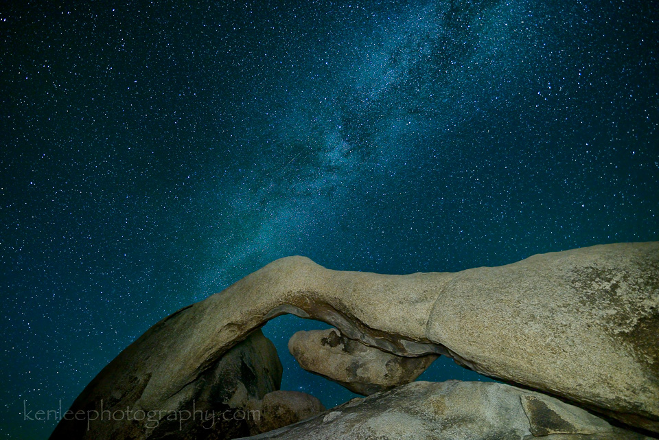 Arch Rock, Joshua Tree National Park, in this long exposure photo of the Milky Way. Utterly gobsmacked by the Milky Way in the clear desert air. This is a rare night sky selfie created while getting accustomed to my new camera and lens in May 2014. Title: Window Into Infinity |