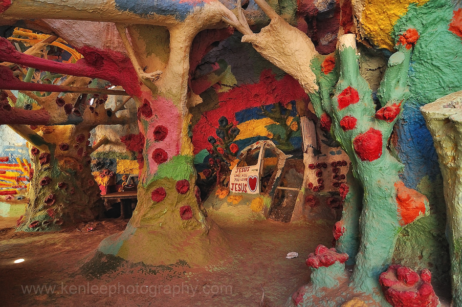 I read about Salvation Mountain in the LA Times Travel Section. Leonard Knight came out to Slab City, near Niland, and liked the area. He began building this as a result for his deep passion for The Lord. He started one week. One week turned into another, then one year into another. But according to the LA Times article, Leonard Knight has taken ill. And with no one to repair it or keep it going, the mountain has begun falling into disrepair. I knew we had to visit this fantastic place, located near the shores of the Salton Sea in Imperial County, south of Bombay Beach.