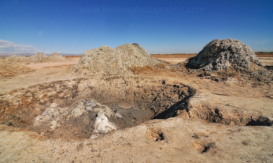 These strange mud pots and mud volcanoes in Niland are the result of CO2 gas bubbling up through mud. With peaks ranging from below ground level to the height of a very tall NBA basketball player, it's a fascinating diversion, just a few miles off Highway 111. The easiest way is to drive south from Niland on Highway 111, going past Hazard Road, and turning right on McDonald Road. Although it begins as a dirt road, the second half of McDonald Road is paved. Turn left on Davis Road, which is a smooth dirt road. There is a large refinery or plant to your left. Just before you get to Schrimpf Road, there are a series of dirt mounds to your left, perhaps 100 feet from the road. Those are the mud volcanoes of Niland. |