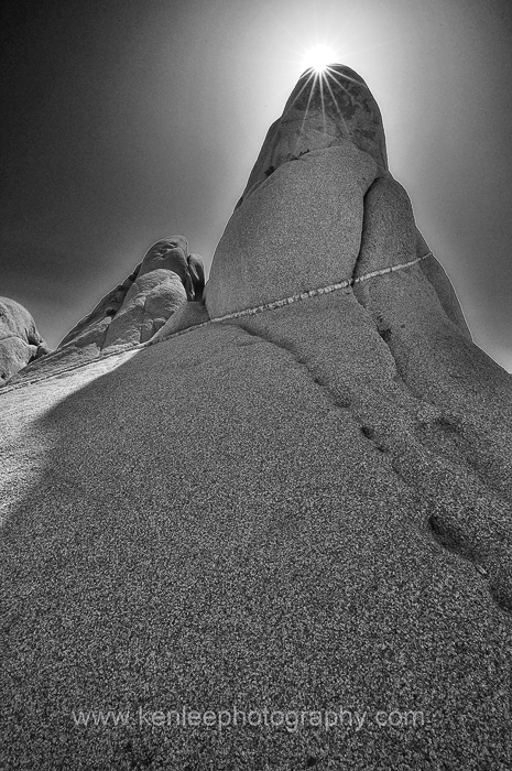 Jumbo Rocks, Joshua Tree National Park. Usually, I get an idea that the photos I'm taking might be great in black and white. Not so here. It was only when I was fiddling around in Photoshop that I thought, "Hey, these feel much more dramatic in black and white." It also places greater emphasis on texture and form, which appealed to me.