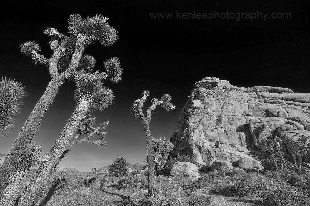 Hidden Valley, Joshua Tree National Park. Joshua Tree National Park. Usually, I get an idea that the photos I'm taking might be great in black and white. Not so here. It was only when I was fiddling around in Photoshop that I thought, "Hey, these feel much more dramatic in black and white." It also places greater emphasis on texture and form, which appealed to me. For those of you who want to see the color versions of this, go to the Extra Page. All photos on this page were taken with my new Tokina 11-16mm f/2.8 lens.