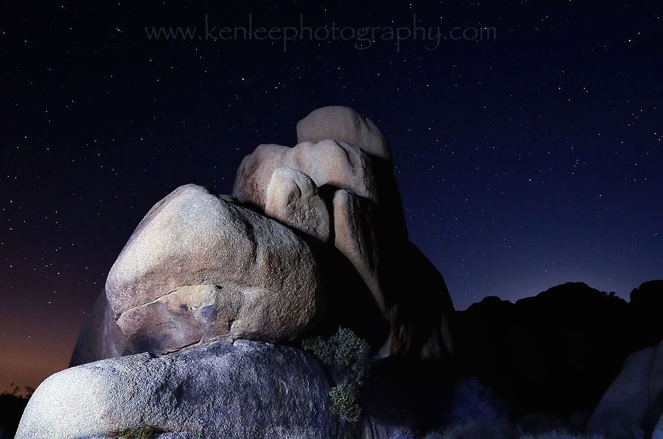 Joshua Tree National Park, CA: Cary's Castle, Hidden Valley, Night Sky, Light Painting, February 2013