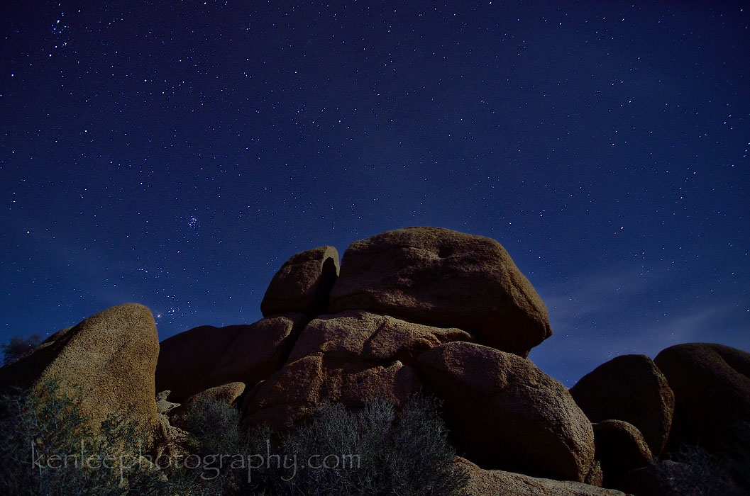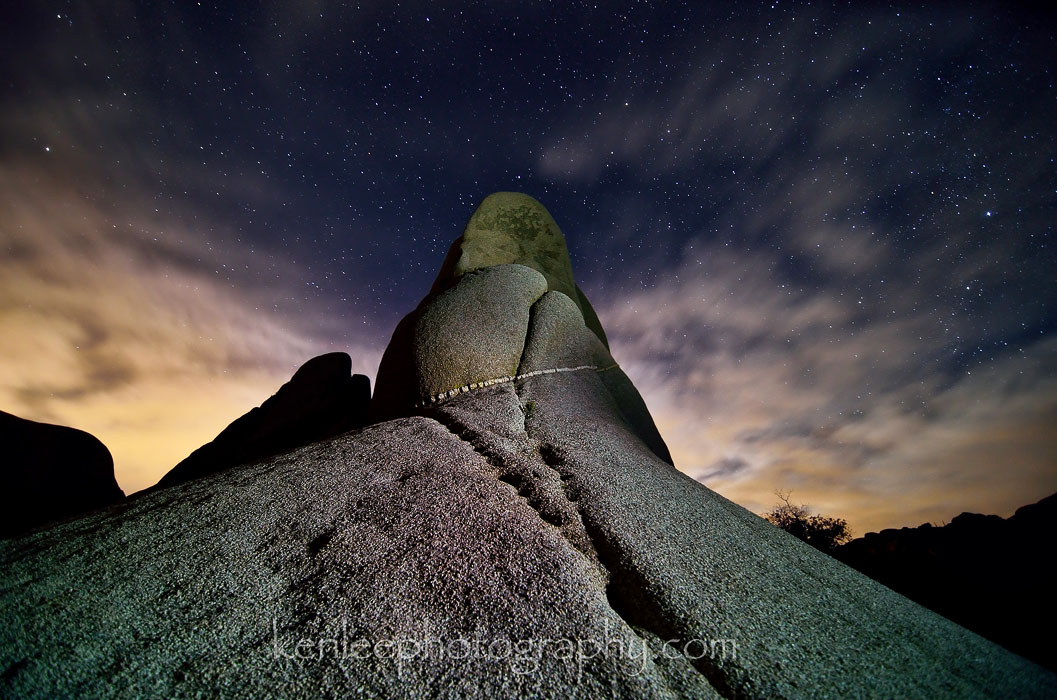 Title: Bread Loaf RockPhotographer: Ken Lee Info: Nikon D7000, Tokina 11-16mm f/2.8, 1970s metal tripod from Sears. This is a long exposure night sky photo of 30 seconds at f/2.8 ISO 400. Taken 8:16 pm P.S.T. on 9 November 2013. Location: Joshua Tree National Park, California, USA. |