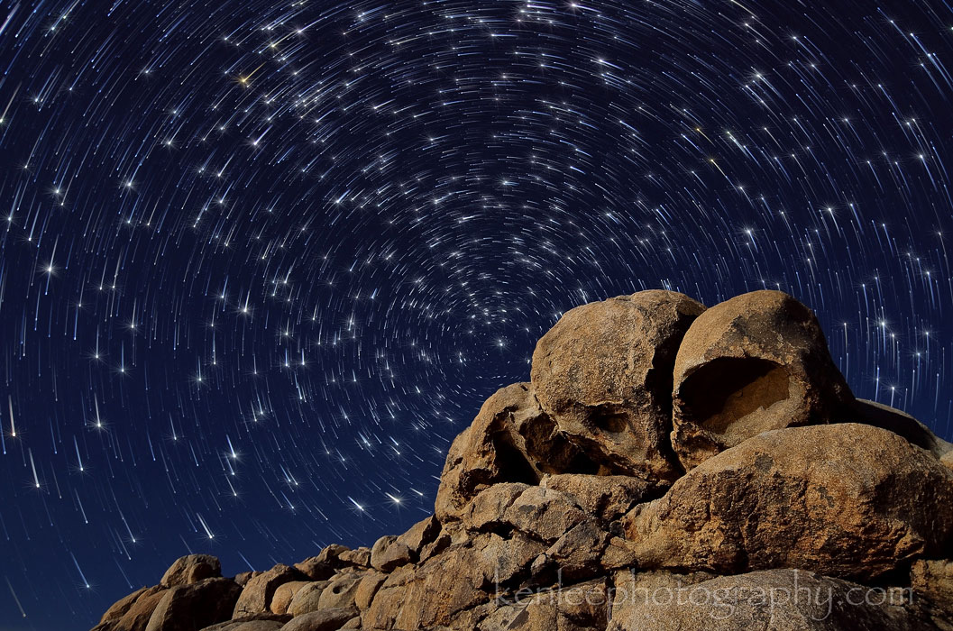 I hadn't shot long exposure night sky photos in Joshua Tree since May, six months ago, a long time by my standards, so I was looking forward to going out into the cold desert air and get a few shots. ~~~ Raining stars over the California desert, a long exposure photo showing the celestial movements of the heavens.