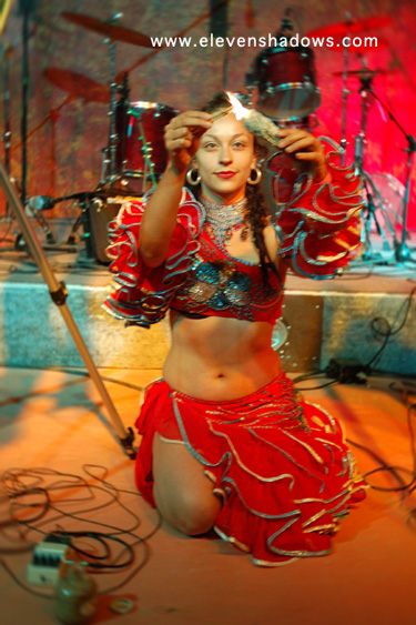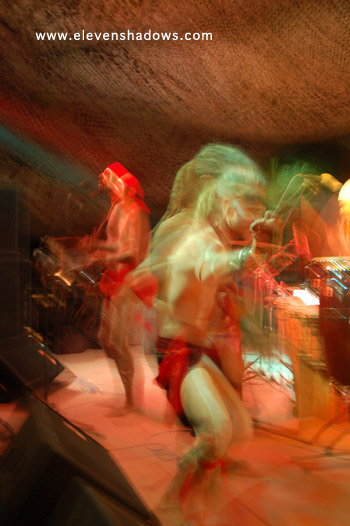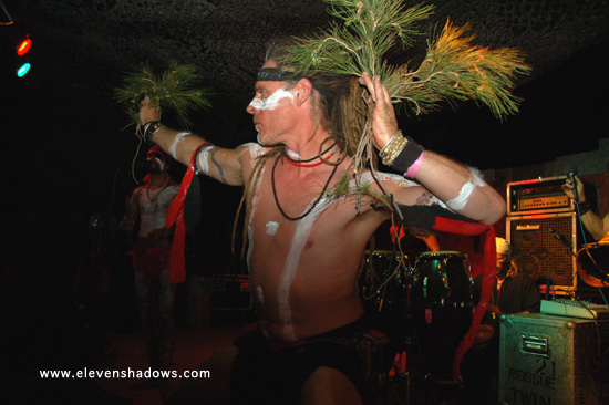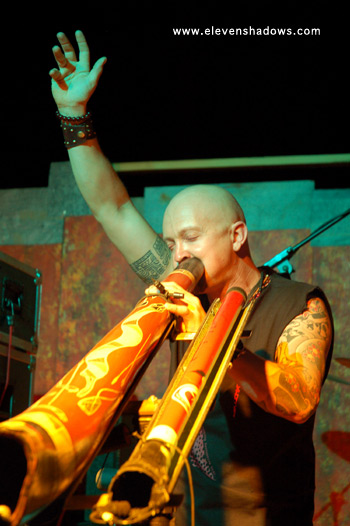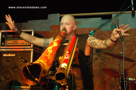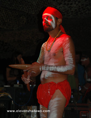 Easily the best and most original sounding didgeridoo player I've heard, Ganga Giri, from Australia, takes his instrument to new places in a dance-fueled techno set.