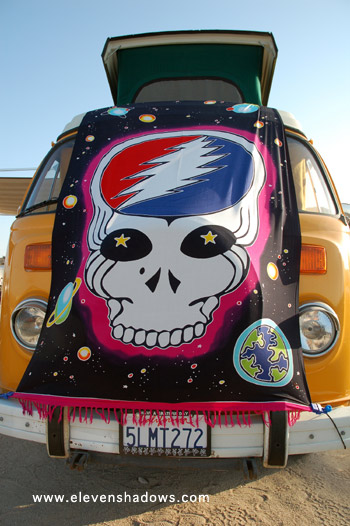 At the campground the Joshua Tree Music Festival, these guys had an endless supply of Cream CDs and beer to beat the heat of the dusty desert air.
