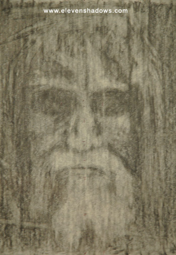 Johnny Cash drew this with a pencil, first applying the pencil and then erasing it in the image of the Turin Shroud. Photo taken 15 August 2007 in the Fender Museum in Corona, CA from an exhibit celebrating his 75th birthday.