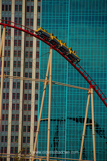 Looking up, we saw the roller coaster ride, weaving through New York, New