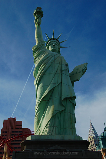 Colosseum, we went through New York, New York.I took several photos of the Statue of Liberty, all with the flag waving majestically in front of it, but chose this instead, this making me the most weak-kneed with patriotic fervor. "Give me your tired, your poor, |