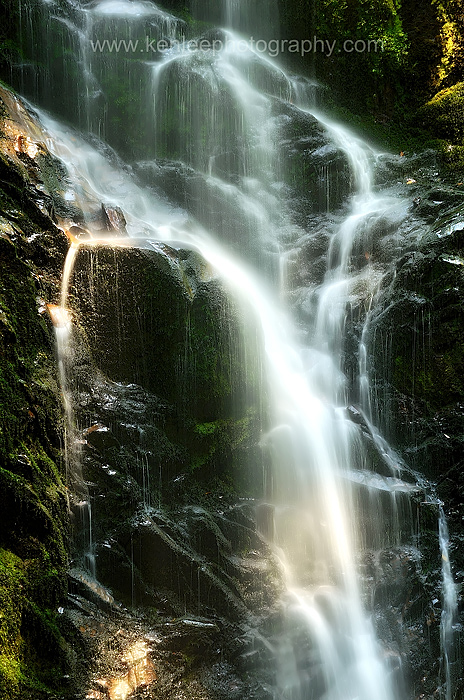 After the early morning in Davenport, I drove over the mountains of Bonnie Doon to Boulder Creek and on to Big Basin Redwoods, getting there at 9:15 am. I hiked down to Berry Creek Falls and back, an eight-mile hike, and getting back to the car by 2:00 pm. Title: Berry Creek Falls, July 2012