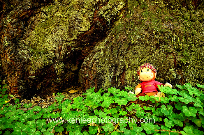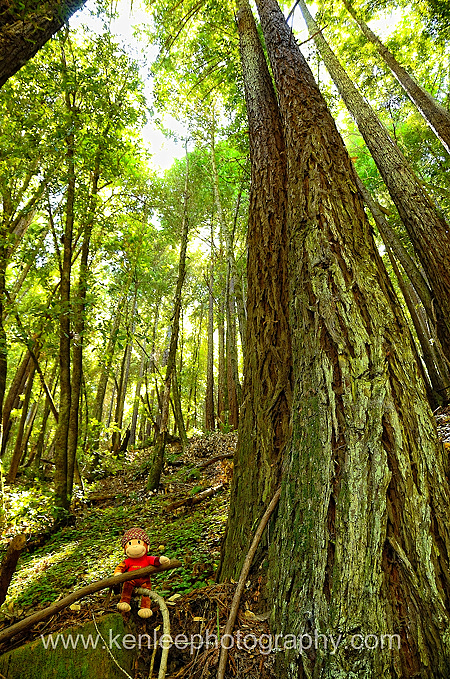 Curious George checks out the mighty redwoods. |