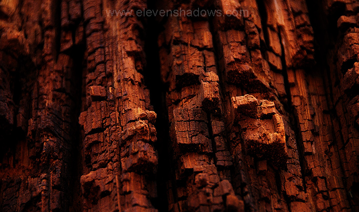the landscape, the brush, the trees, even the rock, were charred coal black.