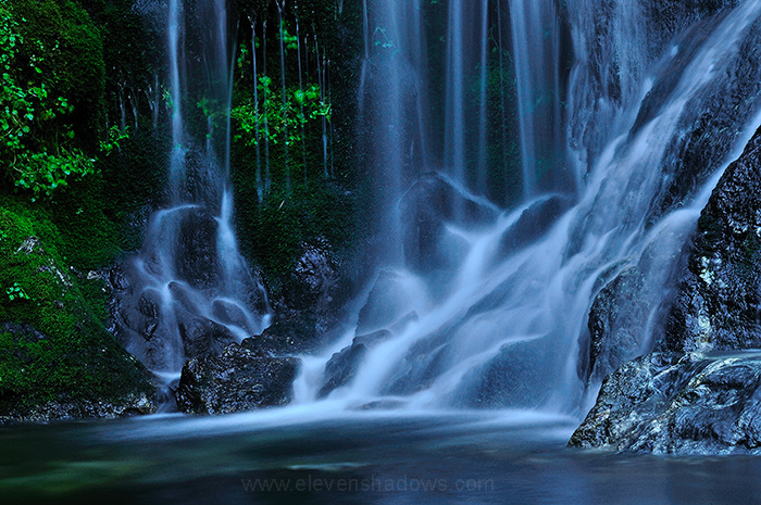 Geek stuff: I used a Nikon D90 using a shutter release with 2-3 second exposures with an f-stop of 22 for all the waterfall photos, using a $45 Joby Gorillapod small tripod. |