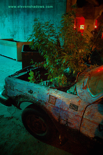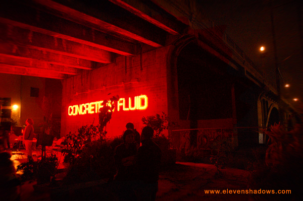 But what is Farmlab? We'll let them describe it: The team behind the Not A Cornfield project in Downtown Los Angeles has become Farmlab, a short-term multi-disciplinary investigation of land use issues that are related to sustainability, livability, and health. Whatever it may be, the water fountain, plants growing in cars, "concrete is fluid" sign, location below Spring Street, and interesting lighting were a treat for the eyes and the camera lens. |