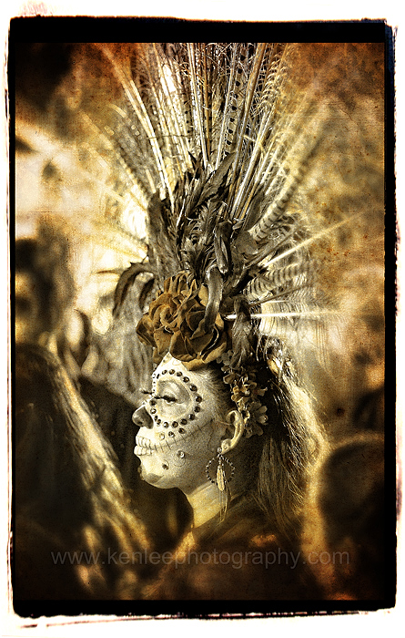 When I process these photos, I feel like I never know what I am going to get until I am finished. Some photos take in an especially potent emotional quality when processed into a photo that looks like an antique. Others simply don't work, and I'll typically leave them off even if it is a good photo. But that said, often, it's the portaits of people in face paint that work out best. |