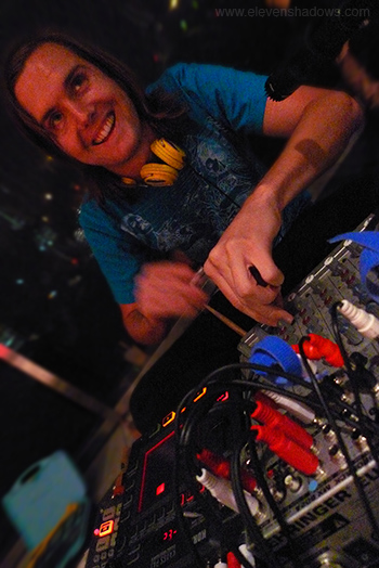 playing the Arp Odyssey, assorted tape loops, and a bicycle. |
