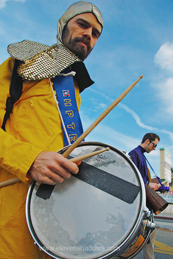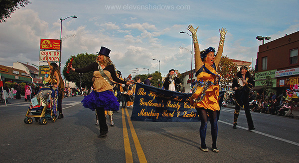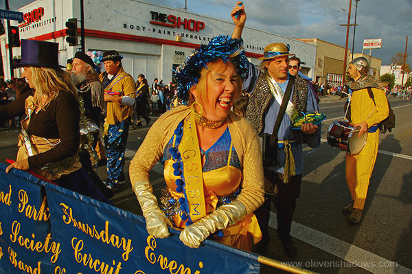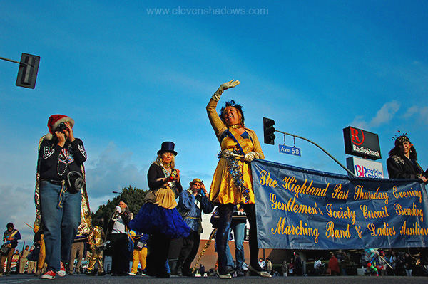 This is The Highland Park Thursday Evening Gentlemen's Society Circuit Bending Marching Band And Ladies Auxiliary at the Highland Park Christmas Parade 2008. |