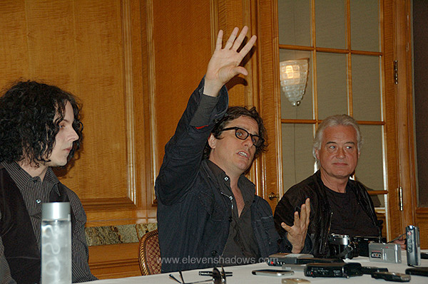 Page: Eventually, the press conference began. We were seated. Jimmy Page, Jack White, and Davis Guggenheim came in and were seated in the front. The press conference was on. left: Jack White |