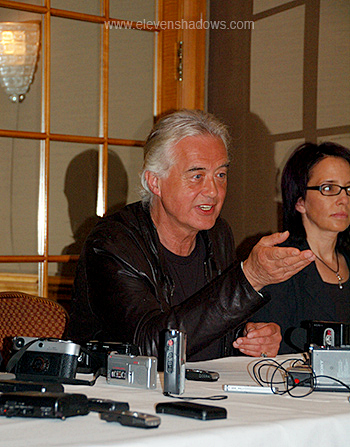 Page fields questions from the press.We had been told beforehand by his publicist not to ask any questions about Led Zeppelin reunions. It bothers him when it's brought up, she had said. I could think of whole reams of "inappropriate" questions I could ask, but no, I was there to take photos and keep my mouth shut. I just felt lucky to be at the press conference! |