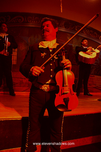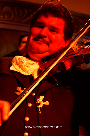 based at La Fonda Restaurant.This restaurant is closing, with the building most likely to be torn down. However, they will reopen some time in 2008 after locating a new place. ~~ The guitarrón player keeps it pulsing. |