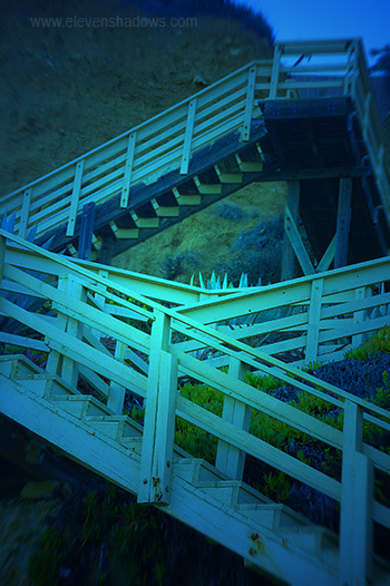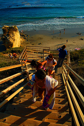 to the most beautiful beach in Los Angeles, making our way down the stairs.