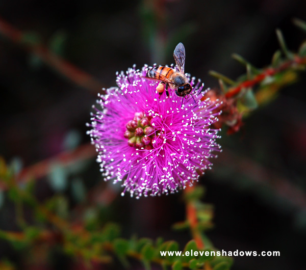 here 20 years later?" Passed that, and still going strong.We were grateful that our winged friend was attracted to the sweetness of the blooms of the large bushes, puffballicus pinkus, instead of Tom's pumpkin pie. |