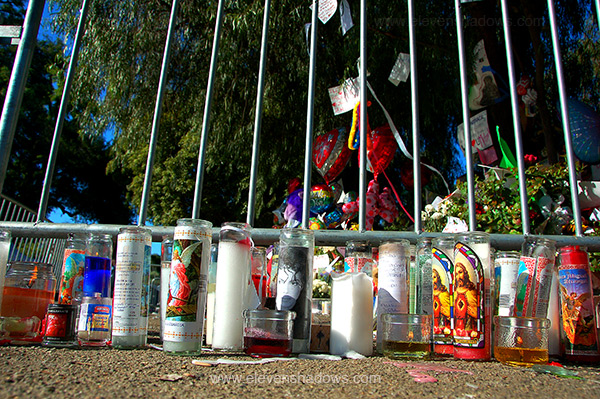 candles to the side of the shrine. One policeman picked up some of the