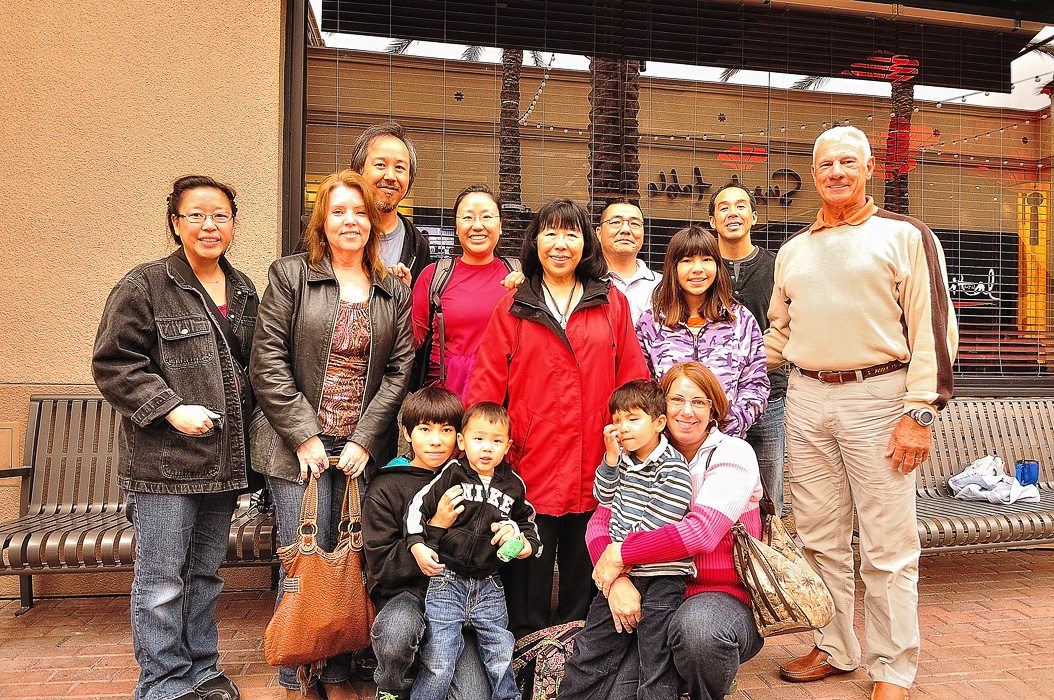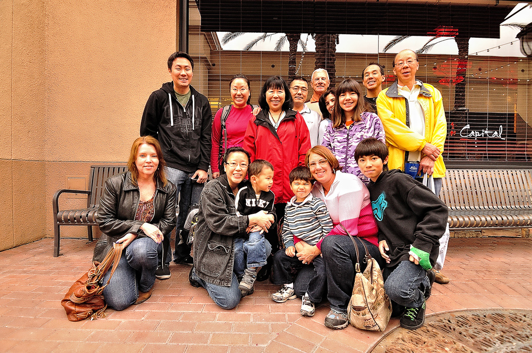 "Another adventure deep, deep into The OC!" I called out to Lisa. "But this time, we're visiting the mysterious ancient Dripping Cave in The Land of the Ancients!!" Lisa stood, mouth agape. "No outsider has ever been allowed to visit this sacred land." In this savage land of planned communities and business parks, we'd been witness to ancient customs and rituals, rituals with indigenous families, National Rifle Association meetings, even mysterious Homeowners Association gatherings, but never had we been invited to see something so off-limits to outsiders as this. Tom was our intrepid guide to The OC. But he would not be able to make it on this trip to the The Land Of The Ancients. "I know of a man who can guide you to where OC natives believe it all began...all their customs, nail salons, tannning booths, everything. Indeed, they consider it their birth place. This place is sacred, and it is a great honor for you to go there." For reasons of personal safety, as you can surely understand, our guide asked not to be named. As before, the Family Whose Names Are "J" greeted us warmly at the Capital Restaurant. As is the custom on The OC, we gathered outside to greet each other and take photos in front of where we were to dine. |