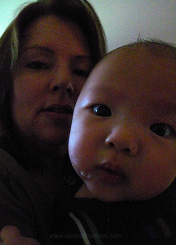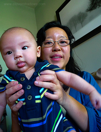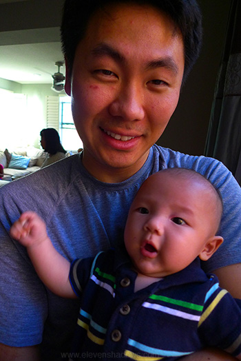 Lisa and I were invited by the family whose given names only begin with "J" to witness them performing indigenous rites for a newborn member of their clan. Arming ourselves with the necessary survival gear, we cut through large swathes of planned communities, not knowing what to expect. But, as before, the Family Whose Names Are "J" greeted us warmly at the door, immediately giving Lisa the newborn to hold. "This is a custom of our people," Father James explained, "it brings us good luck to have the first visitor through the door hold the one we call Little Joah." |