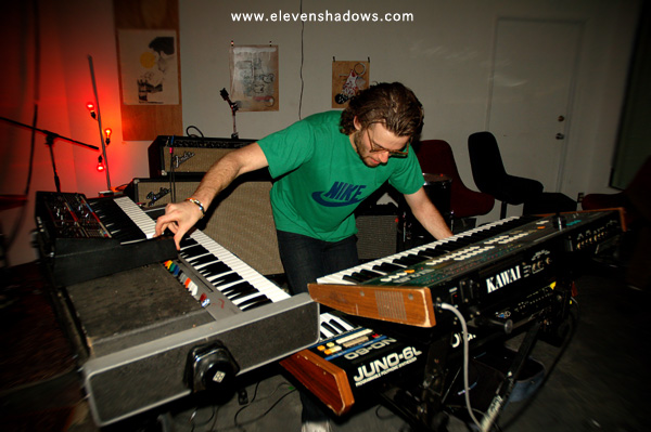 ![]() I performed last week at Pehrspace (4 February 2008), playing keyboard with Sonelle. Here's how Sean describes us: Sonelle is Mitch Brown’s group, and they were rocking some dark dark Miles Davis “Agharta”-style vibrations that had everyone entranced. No photos, though. Forgot the camera. Too bad. It's fun to take photos while performing. U.S. minimalist jazz informed by afro-latin jazz influenced by U.S. jazz…?? Photo by Sean Carnage.