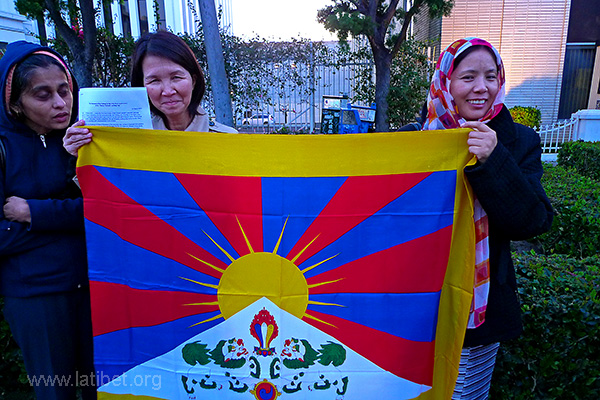 and Tibetan human rights supporters gathered in front of the Chinese