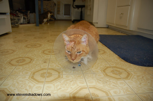 Waylon after coming back from the hospital for an abcess (Willie is in the background) - early 2006.