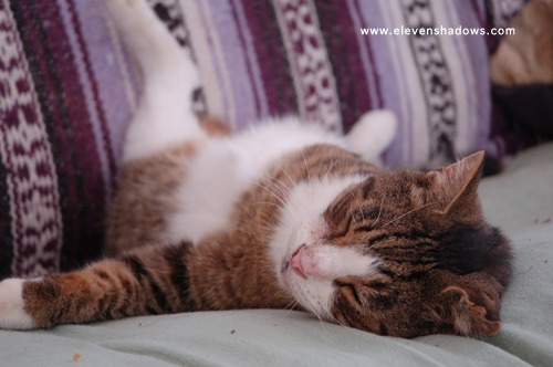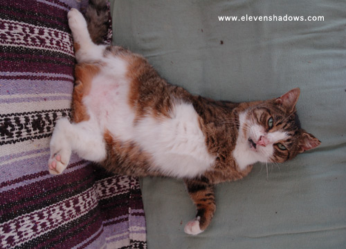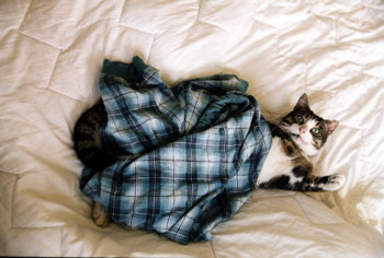 Willie insists that the outside futon is his resting place. Bean's not sure. August 2007 at a birthday party for Tom, Bill, and Paul.