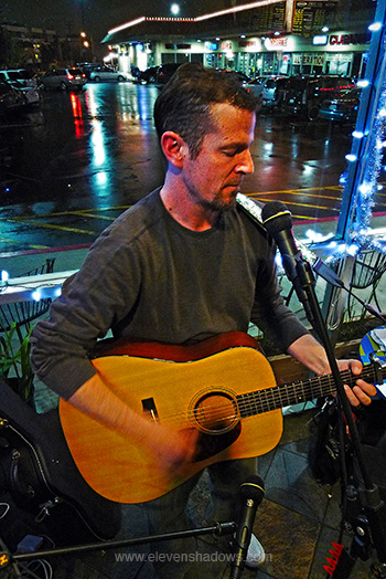 Claxton strums his Martin in terrestrial earth.Zak Claxton strums his Martin in Second Life. |