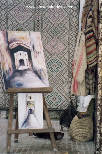 tree. Rue de Skala, along the ramparts, one could watch the local artisans craft these lovely tabletops and avoid the sometimes pushy storekeepers. Walking up to the ramparts, I was rewarded with gorgeous views of the coast and part of the walled medina below. |