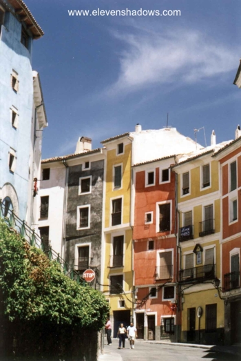 Houses). The facades overhang the Huécar Gorge. They date back to the 14th
