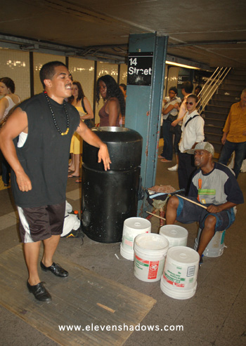 After the tea ceremony, Lisa and I rode the subway back to the Upper East Side to get ready for the wedding ceremony later that evening. At the Union Station/14th Street junction, while waiting for a northbound train, we were treated to a talented drum and tap dancing duo. |